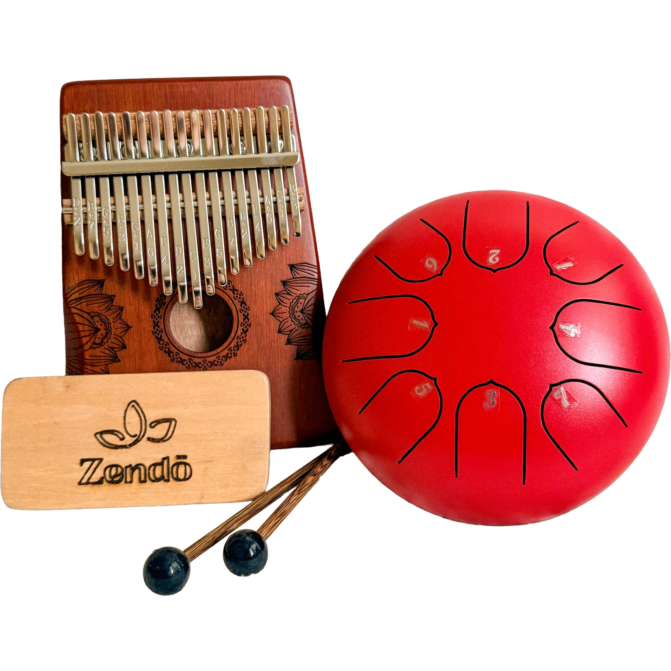 1 Тонг Дръм – 8 ноти, 1 Калимба с 17 клавиша, 1 Дървен Шейкър